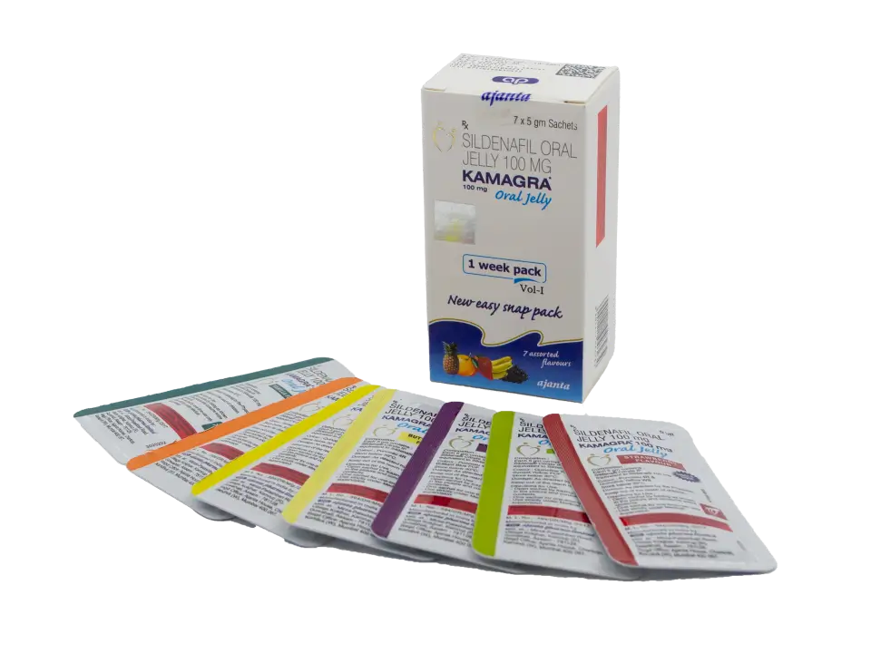 Το Kamagra Oral Jelly περιέχει σιλδεναφίλη, δραστική ουσία που χρησιμοποιείται για την αντιμετώπιση της στυτικής δυσλειτουργίας. Η μορφή jelly το καθιστά δημοφιλές σε άτομα που δυσκολεύονται να καταπιούν χάπια.